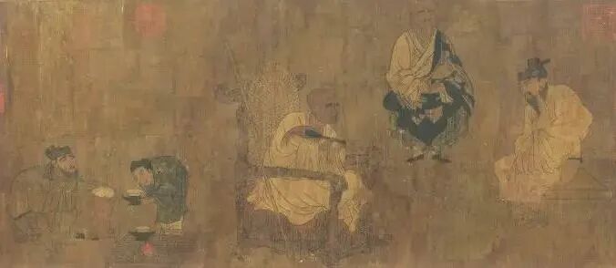 左:唐·阎立本 萧翼赚兰亭图(烹茗局部)